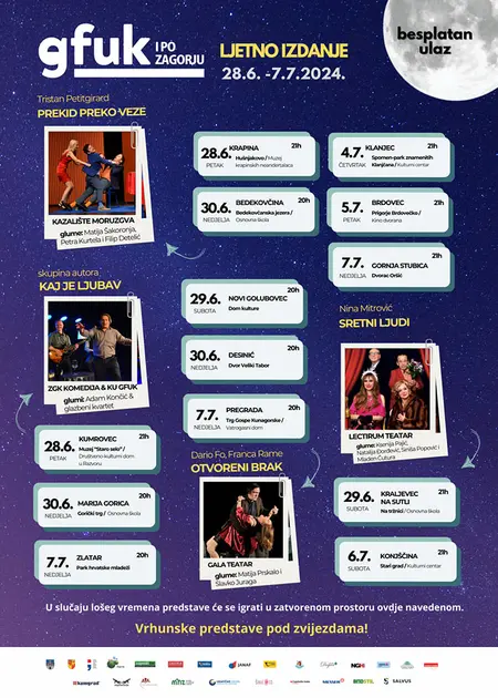 Pred nama je već četvrta „ljetna verzija“ Glumačkog festivala koja diljem Zagorja igra na predivnim lokacijama na otvorenom. Očekuje vas pregršt vrhunskih predstava pod zvijezdama, a ulaz na sve izvedbe je besplatan!
