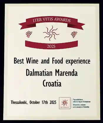 Na međunarodnoj konferenciji ITER VITIS, koja se održala u Solunu (Thessaloniki), Grčka, Turistička zajednica Splitsko-dalmatinske županije (TZ SDŽ) nagrađena je prestižnom nagradom Iter Vitis Awards 2025. u kategoriji Best Wine and Food Experience